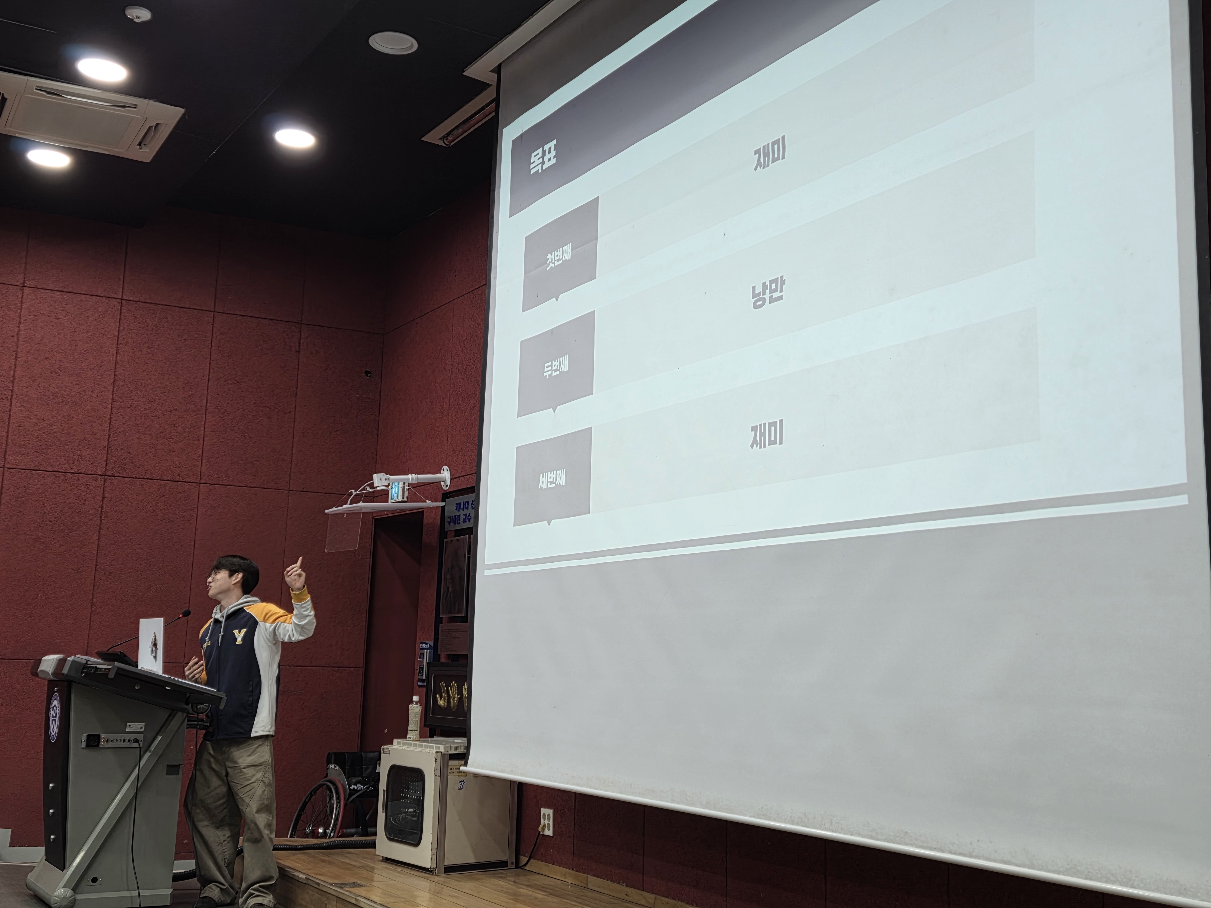 개강총회에선 낭만 가득한 동아리 소개와 함께 휠체어 룰렛 이벤트를 통해 경품 추첨을 진행하며 웃음이 가득한 시간을 보냈습니다.