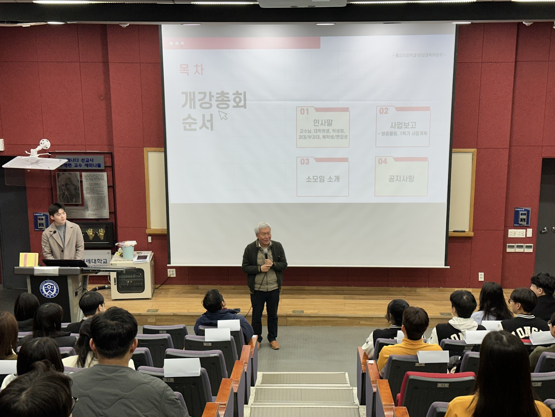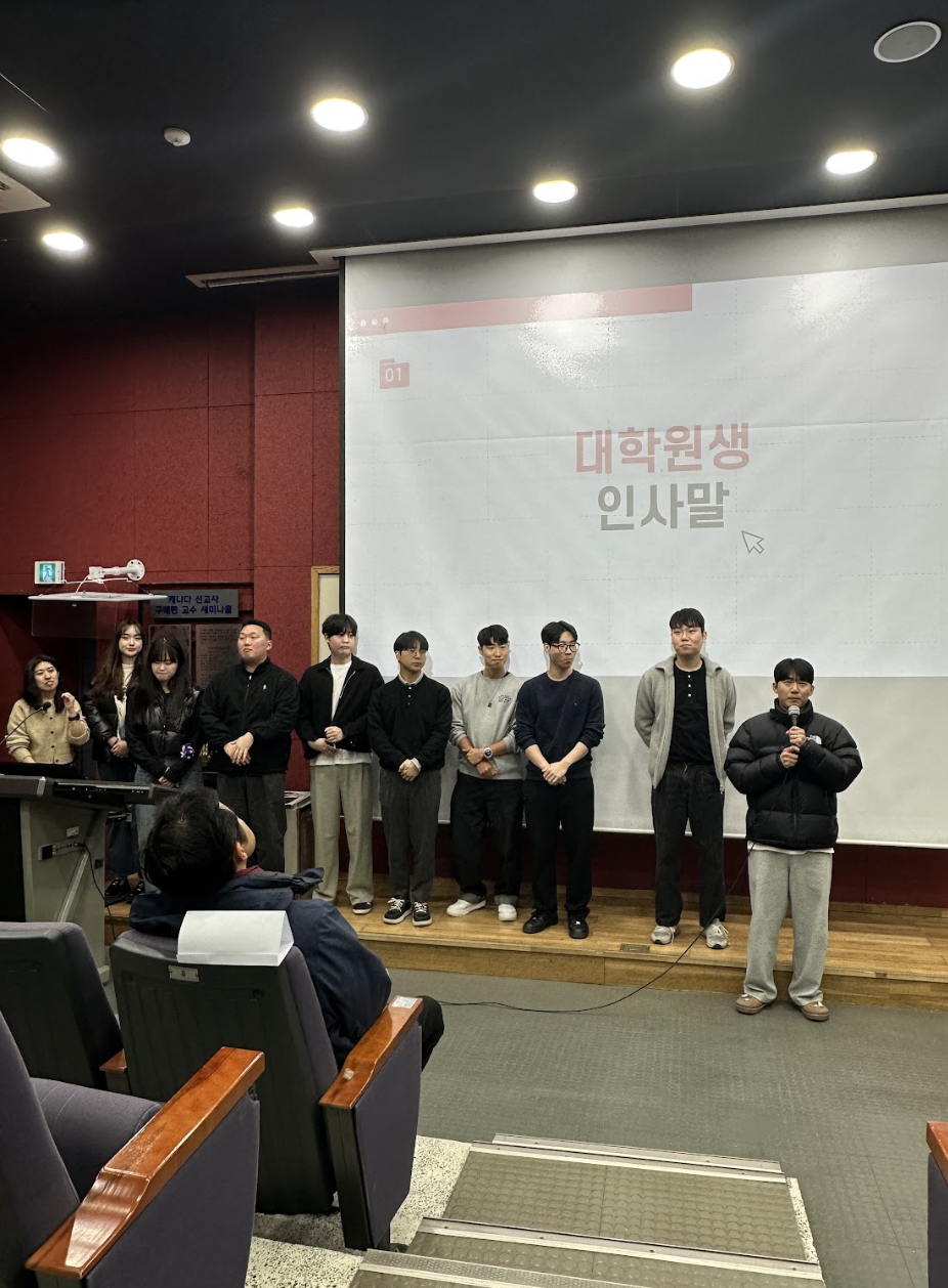 일시 : 2026/03/03 장소 : 백운관 2026년도 물리치료학과 개강총회가 활기찬 분위기와 함께 진행되었습니다. 이번 개강총회는 교수님, 대학원생 선생님, 신입생 및 편입생, 복학생, 그리고 재학생까지 모두 모여 학기를 시작하는 뜻깊은 시간이었습니다. 앞으로 즐겁고 활발한 한 학기가 되길 바라며, 모든 학우 여러분들의 학교생활을 응원합니다.
